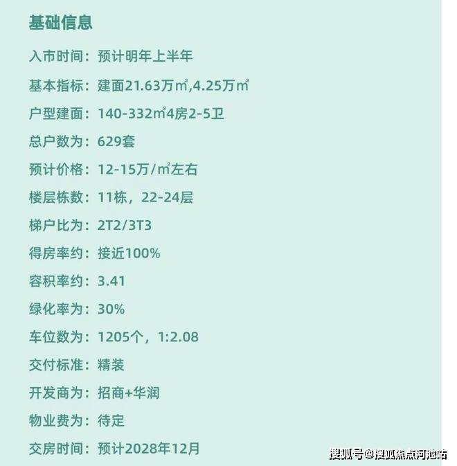 项目预计明年上半年入市,计划2028年底精装交付。