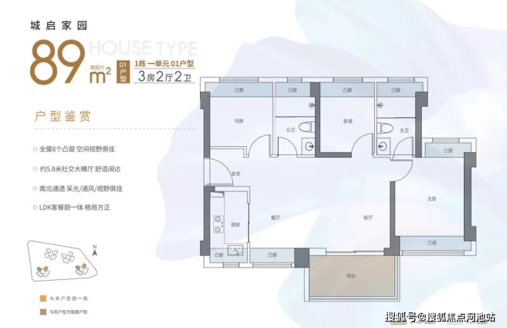 •主推产品:约89㎡三房两卫、约120㎡四房两卫