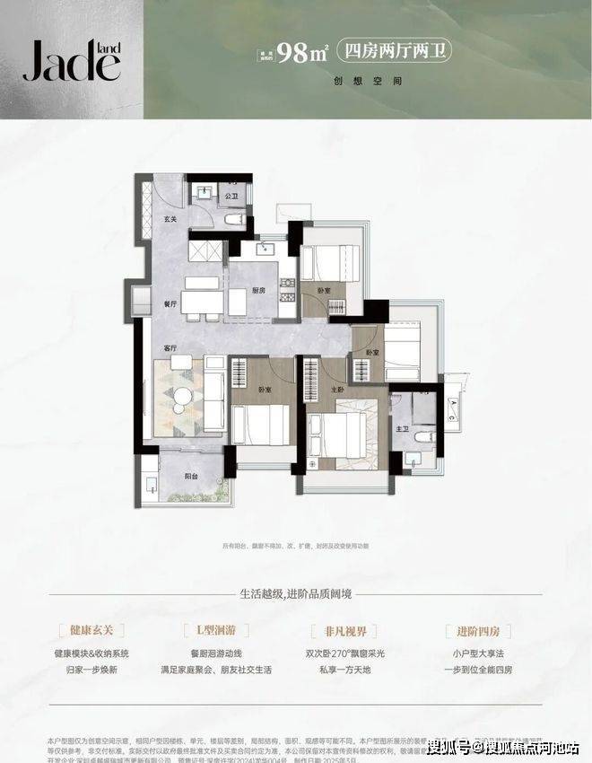 【98㎡4房2卫】板块内目前「唯一」面积段区间做到四房的产品‼空间刺客‼