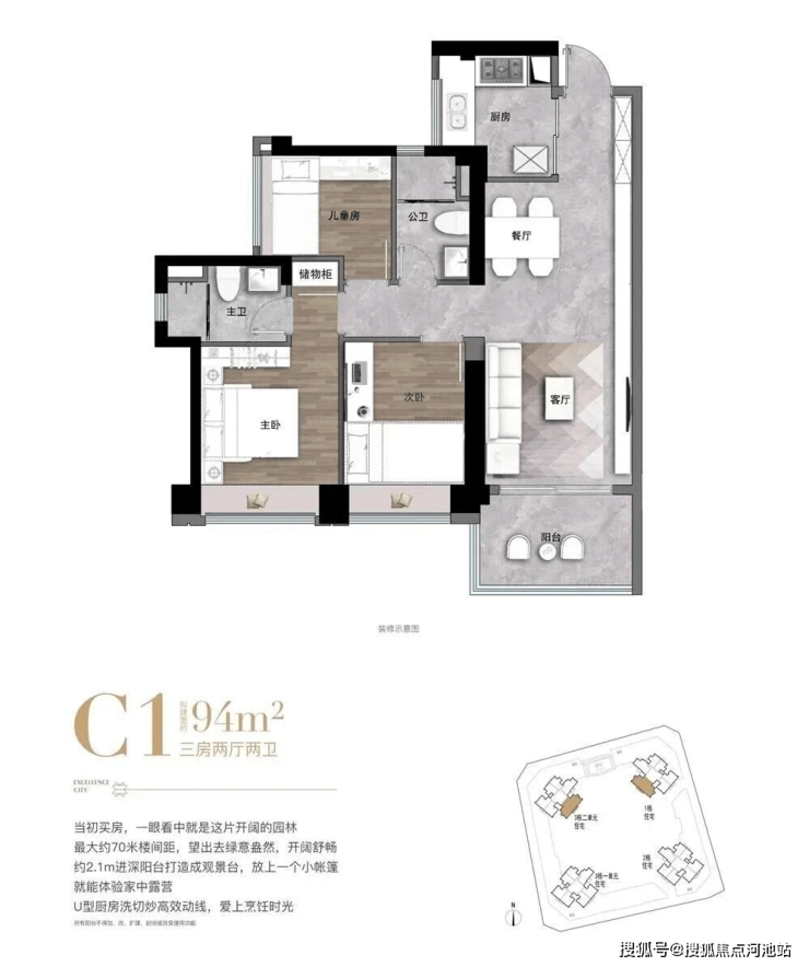 三房最大约2.1m大进深宽景阳台:城市观景台、马峦山观景台,亲子露营、居家健身、撸猫喝茶等多种体验,实现第三空间的趣味延伸
