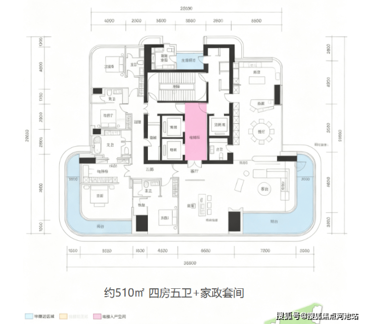 小区共403套211-218-302-370-512㎡大平层(还有4套518-655-938㎡顶复),作为央企中信城开打造的39.6万㎡综合体,首批大概率将从B栋(370㎡)或D栋(302㎡)中择一推出,而备受瞩目的A栋(510㎡)则可能暂不入市,目前项目已出地面数层,在片区同级别顶豪中保持着领先的建设进度。