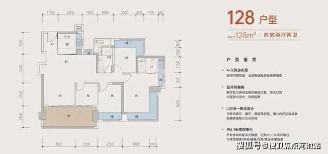 从具体的户型设计来看,居所几乎被飘窗+阳台环绕,据悉赠送率最高可达27%。