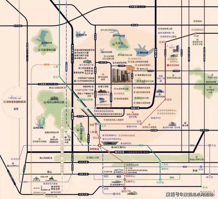 自驾路线:紧邻广深高速机荷路段,距市区直线距离约15.7公里,距宝安机场直线距离约19.3公里;20分钟到达龙华市区;从锦顺名居经大浪北路到福龙路40分钟可至福田香蜜湖。