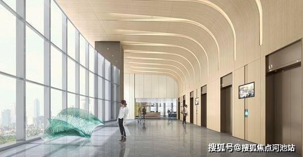11/22/32楼5米空中大堂,围绕文化创新、科技共享、绿色生态三主题设计,打造企业的第二功能厅。