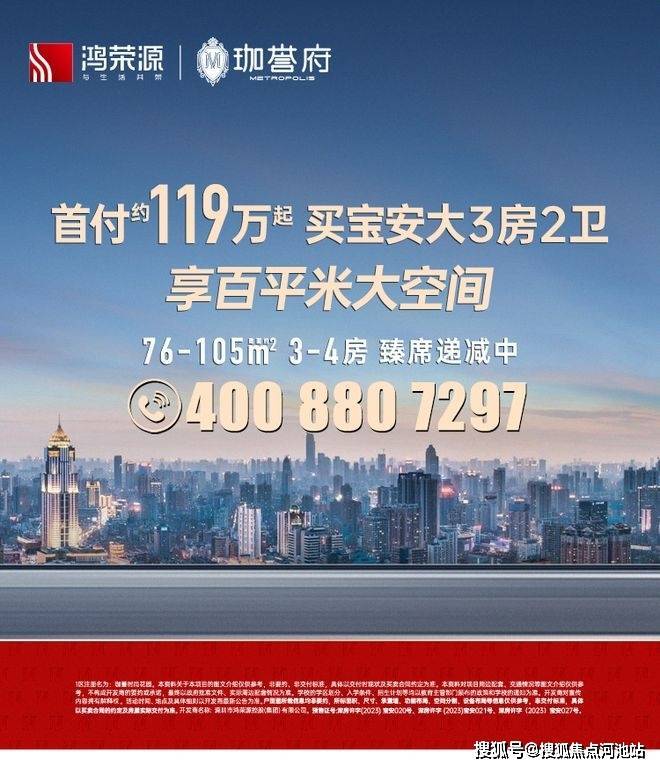 【鸿荣源珈誉玖玺】西部高端品质新品 约775-97㎡全能三房 122-199㎡臻奢4房!
