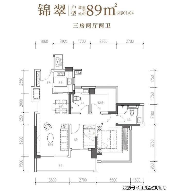 •锦翠·建面约89㎡3房2厅2卫:南向宽厅,阳光满溢,主卧L型采光,空间户户舒适