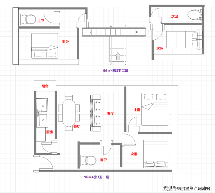 96㎡4房3卫690万起