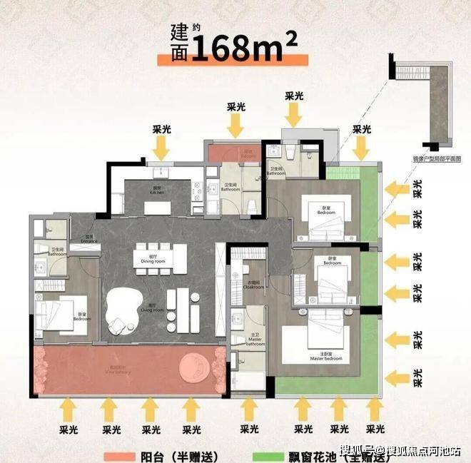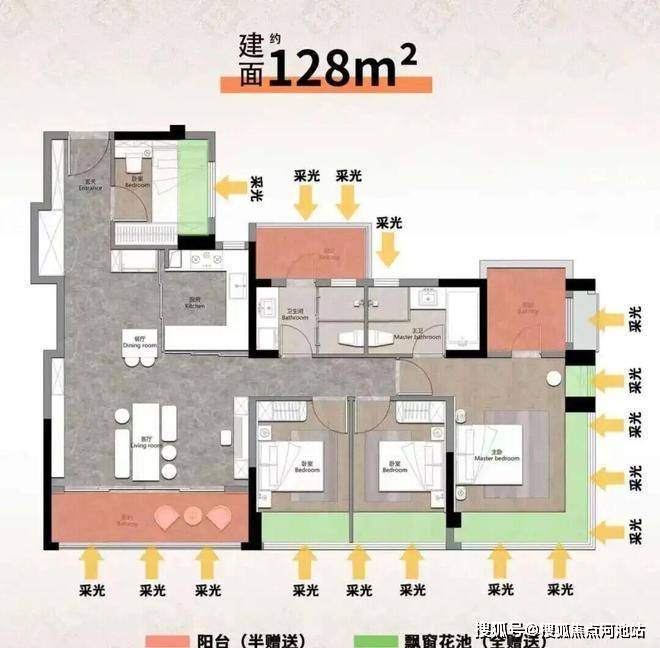 约89㎡三房两卫户型:虽然是入门级产品,却已站上同面积段的品质天花板。四开间全南向采光、近4m客厅、6.4m阳台。