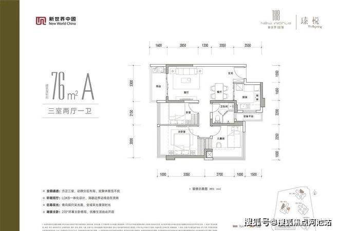 新规高得房率,76㎡做三房、96㎡做四房,同面积多一房;