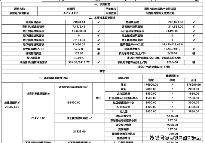 根据:深圳市规划和自然资源局光明管理局关于公布润臻园项目《建设工程规划许可证》及总平面图的通告
