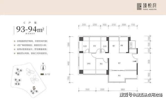 94㎡的4房2厅2卫,折后总价319-339万/套,折后单价3.38-3.58万/㎡。