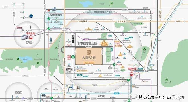 吉华承担着建设龙岗区“一芯两核多支点”发展战略中的“西核”——数字信息核、协同周边区域打造世界级ICT产业集群承载区、构筑龙岗“都市科技绿芯”的使命任务。片区与坂雪岗科技城仅一路之隔,具备承载世界级电子信息产业集群辐射的政策优势和天然区位优势。