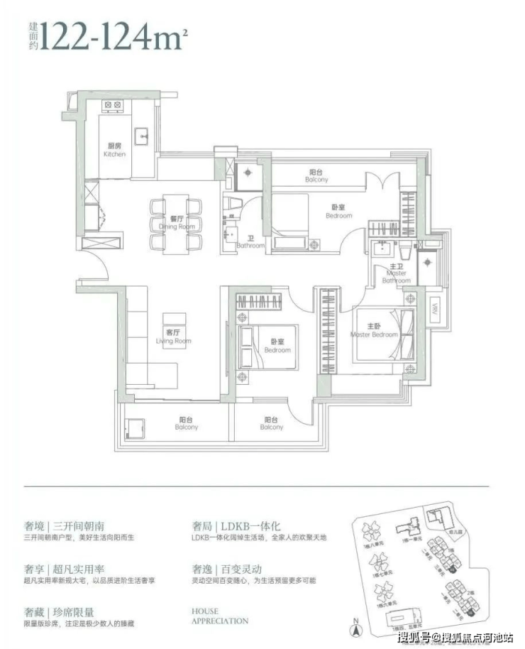 户型出色:120㎡ + 能做四房三卫双套间,公区品质佳,设计合理实用。