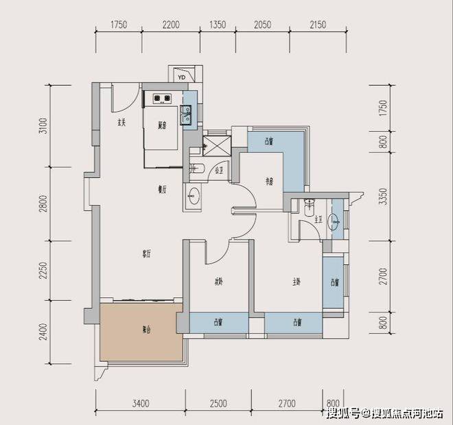 设计的是横厅南北通透格局,进门入户玄关,客餐厅5.6米开间,LDKB一体化设计,客餐厅出11㎡的大阳台,主卧+1个次卧双飘窗设计,全屋12面飘窗,3个卧室分别做到了主卧15.1㎡/次卧7.83㎡/次卧6.96㎡(包含墙体飘窗),L型灵动式厨房,卫生间干湿分离,得房率约:96.4%(包含赠送),阳台主朝西北或东北向。