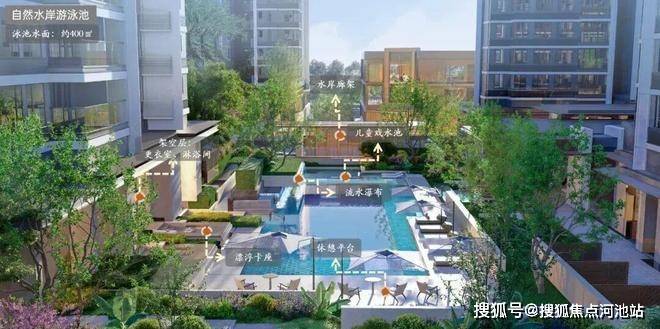 【自然水岸游泳池】:约400㎡无界亲子多元互动型泳池