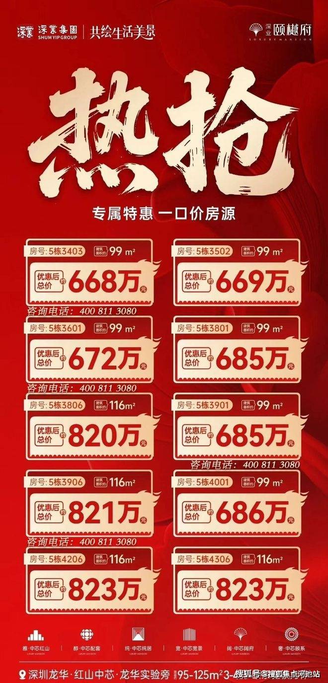 最新消息:龙华红山最后的大花园社区准现房新盘——深业颐樾府,最近推出了部分一口价房源,单价6.6万/平起!如需了解本楼盘更多详情,欢迎来电咨询深业颐樾府楼盘开发商售楼处免费400咨询/预约电话:400-811-3080(官方发布)中介请勿扰,因近期参观的人员太多,本项目营销中心暂不接受临时到访,为不耽误您的行程,过来楼盘现场参观样板房请务必记得提前来电预约,预约看房的话最终房价还能更加优惠,最终价格包您满意!
