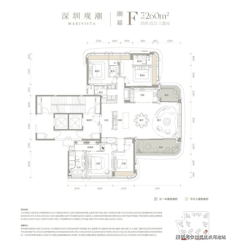 建面约260㎡四房三卫三套间