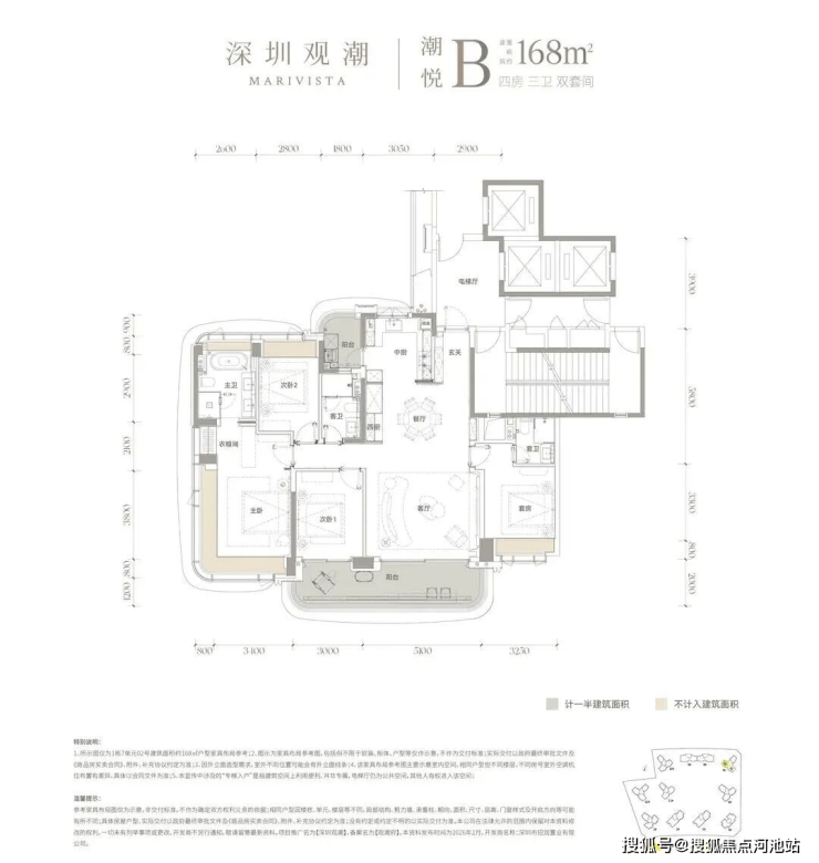 建面约168㎡四房三卫双套间