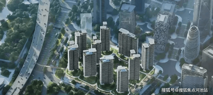都市中心鲜有的约 3.4 超低密新规产品,边界半开放围合式"一心十岛"布局与约12米高空悬浮住区,巧妙界定私享与公共的社交分寸,以景观互动廊桥链接私享静谧与城市公共生活。