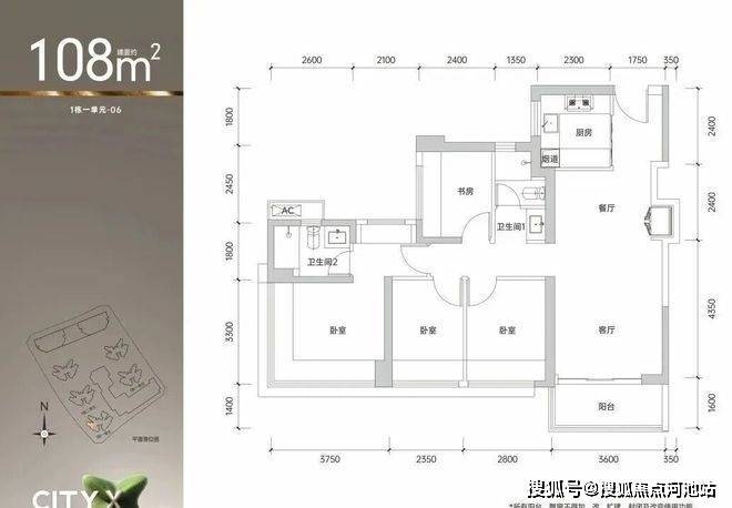 108㎡的4房2厅2卫,1栋2/3单元02/1栋1单元06户型,设计的是经典竖厅格局,进门入户玄关,客厅3.6米开间,LDKB一体化,S墙设计预留冰箱卡槽位,四开间朝南,动静分区,4个卧室分别做到了主卧16.2㎡/次卧9.24㎡/次卧7.76㎡/次卧7.32㎡(包含墙体飘窗),U型厨房,公卫三段式分离,得房率约90%(包含赠送),东南或西南朝向。