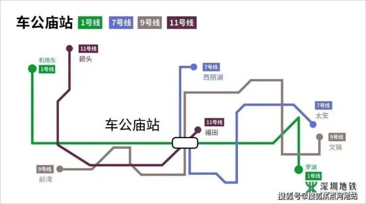 占据广深港交通枢纽,车公庙地铁枢纽上的物业,1、7、9、11 号四条地铁交汇,到站即到家;地处深南大道头排,毗邻广深港福田高铁站。
