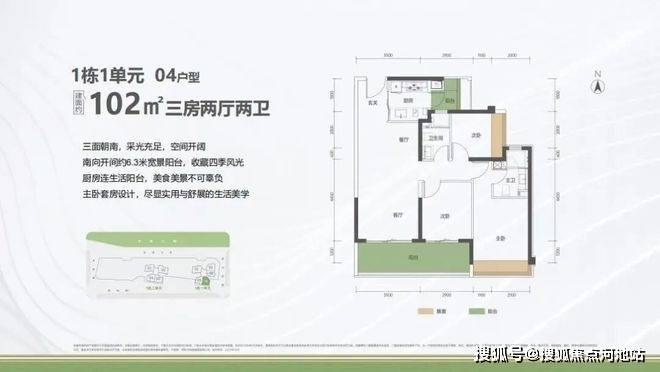 【建筑面积102㎡3房2卫】