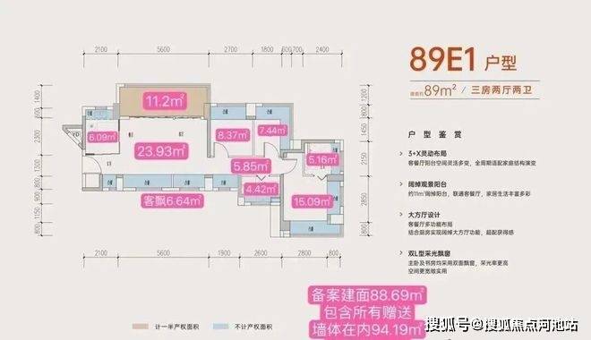 1,华润打造的新规户型得房率近100%