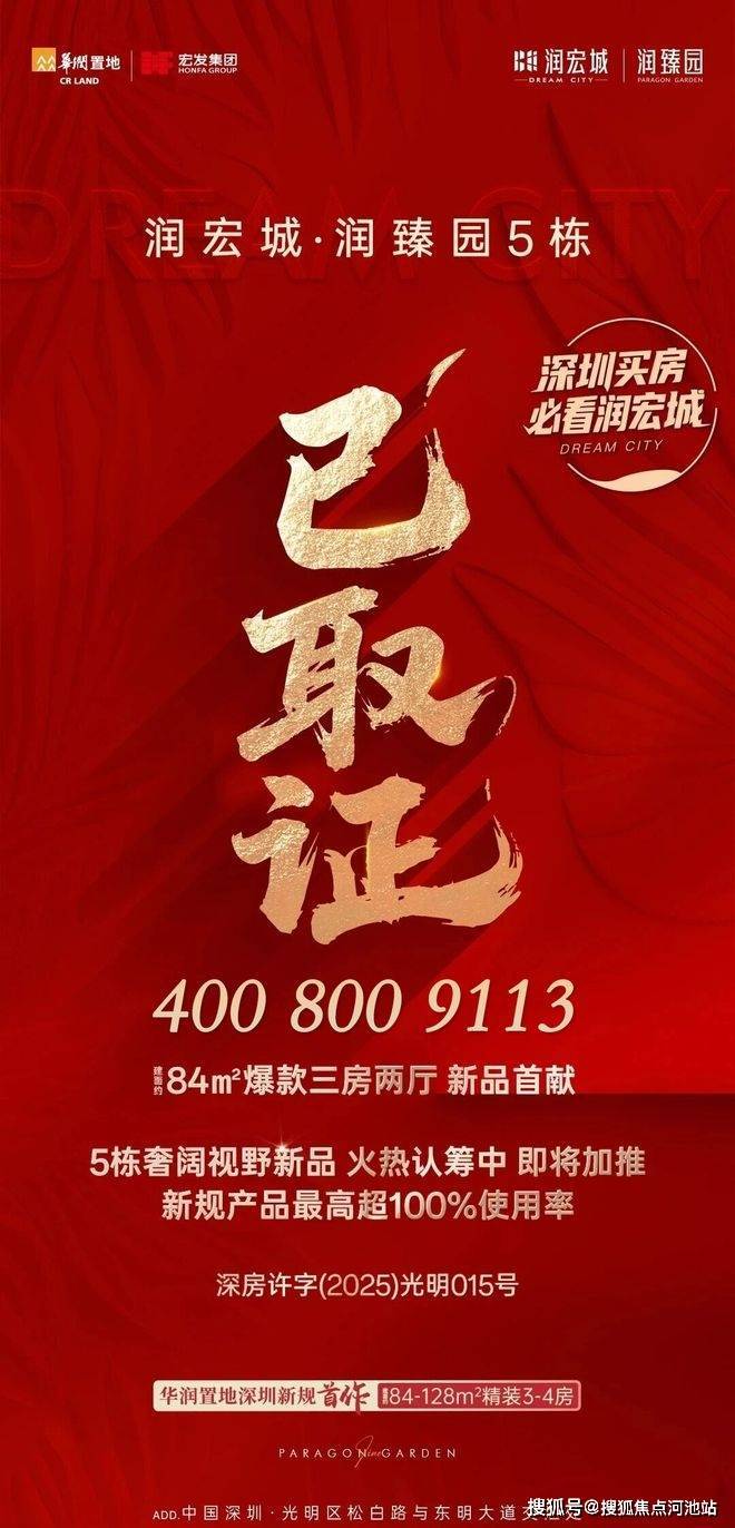 深圳【润宏城润臻园】5栋已取证!总价240万起,买84-128平精装3-4房