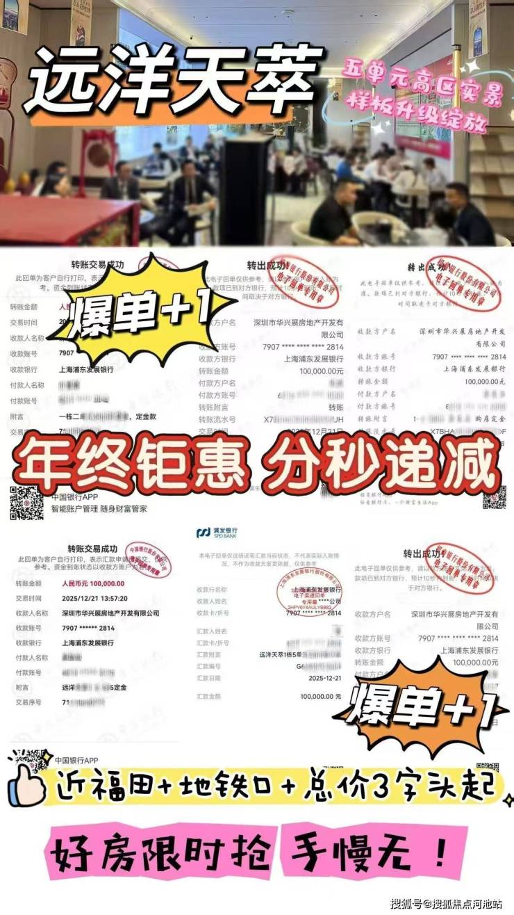 位于深圳市龙岗区坂田的新楼盘——远洋天萃世纪雅园于2024年12月13日开盘入市,当时首期推出1栋1/2/5单元,共543套房源,面积有89㎡的3房2卫,110-128㎡的4房2卫户型,备案均价5.35万/㎡,备案单价4.69-6.1万/㎡,总价420-778万/套,关于交楼时间,我们项目计划在2026年12月31日前带华为智能精装交房!