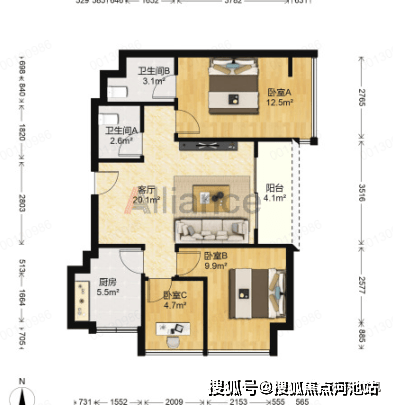 ◆户型:3室2厅1厨2卫1阳台