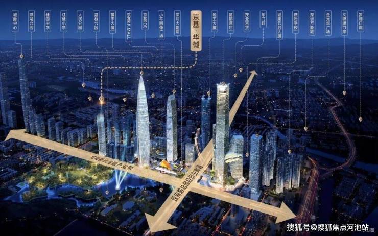 立足「红岭新兴金融产业带」&「深南路总部经济主廊道」双万亿十字轴心,比肩东京涉谷、伦敦金融城等,打造代言深圳门户的国际都会范本