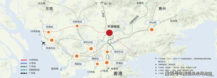 地铁配套:在远程规划中有17号线二期“鹅公岭站”就在项目附近,目前可以去到距离约3公里外的平湖枢纽站,在《深圳市轨道交通线网规划2016-2035年》远期规划中,平湖枢纽将汇聚10号/17号/18号地铁线,以及深惠城际,厦深铁路,广深铁路等多条主干线,将平湖枢纽定位为四主五辅中的“五辅”枢纽之一。