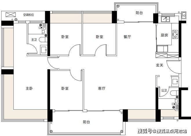 在整个小区中,仅有24套的115㎡“双龙抱珠”户型。
