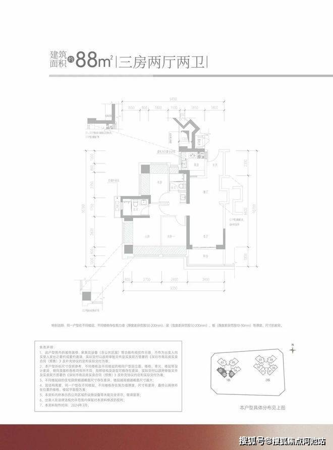 88㎡的3房2厅2卫,设计的经典竖厅格局,客厅3.4米开间,LDKB一体化设计,S墙设计预留冰箱卡槽位,3个卧室分别做到了3.55米/2.6米/2.4米的宽度,U型厨房,公卫三段式分离设计,得房率约:95%(包含赠送),阳台进深1.8米,有西南或东南朝向。110㎡的4房2厅2卫,设计的是经典竖厅格局,客厅3.8米开间,进门独立玄关,LDKB一体化设计,S墙设计预留冰箱卡槽位,4个卧室分别做到了3.8米/3.2米/2.55米/2.44米的宽度,U型厨房,公卫三段式分离设计,得房率约:95%(包含赠送),客厅连接次卧出6.2米的大阳台,朝西南向。114㎡的4房2厅2卫,设计的是经典竖厅格局,客厅3.8米开间,进门独立玄关,LDKB一体化设计,S墙设计预留冰箱卡槽位,4个卧室分别做到了3.8米/3.2米/2.55米/2.44米的宽度,U型厨房,公卫三段式分离设计,得房率约:95%(包含赠送),客厅连接次卧出6.2米的大阳台,朝东南向。