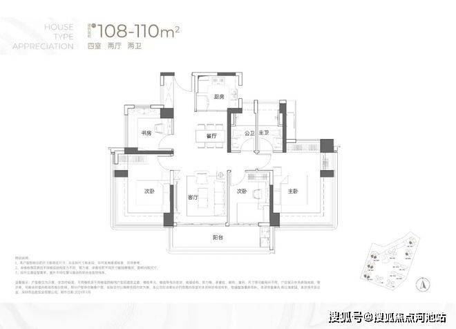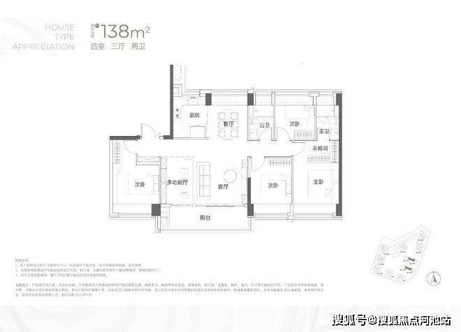 设计的是竖厅双龙抱珠格局,客厅3.5米开间,LDKB一体化,4个卧室分别做到了3.7米/3.4米/2.8米/2.6米的宽度,主卧加2个次卧270°全景飘窗,客厅连接次卧出6.1米长的大阳台,U型厨房,得房率约95-97%(包含赠送),西南或东南朝向。