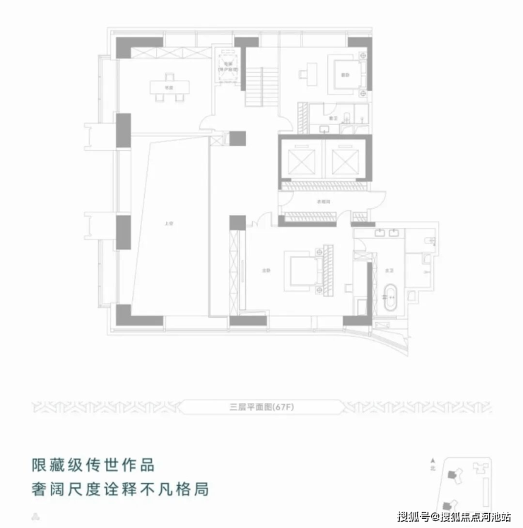 约233㎡3+1房3卫 A户型,西北朝向看名商和沙河高尔夫;