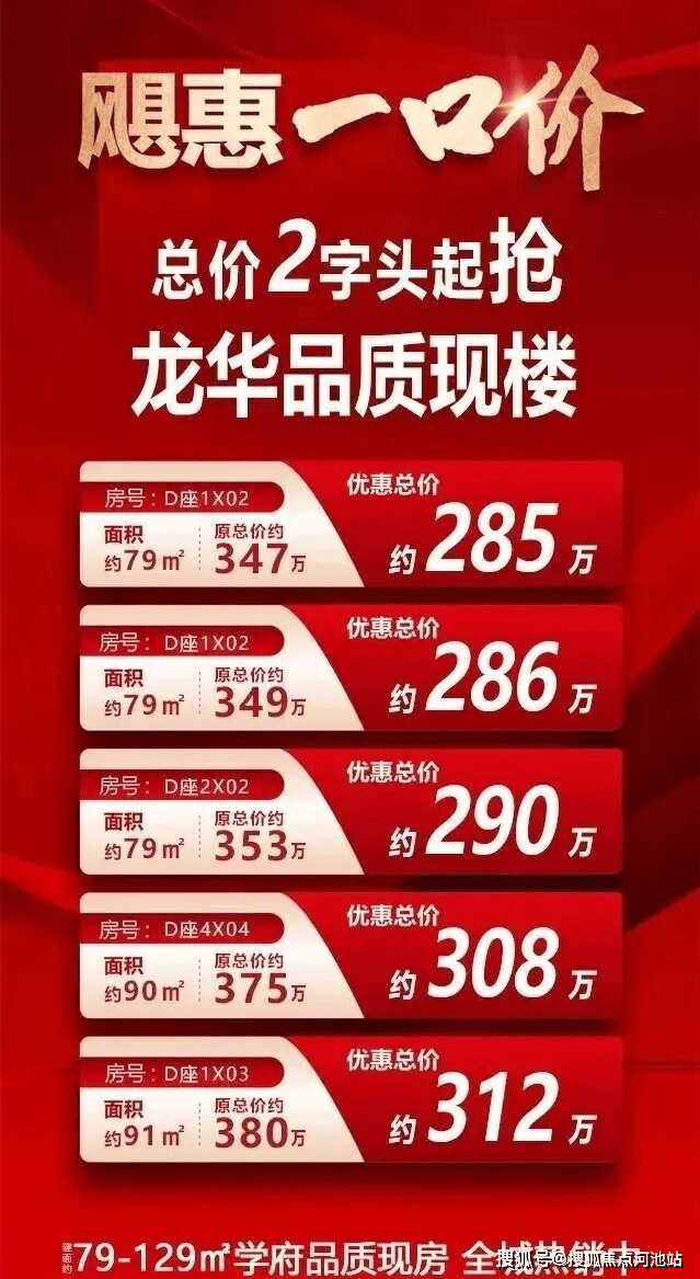 推出特价房源【锦顺名居】总价285万起买三房,79-123平现房3-4房