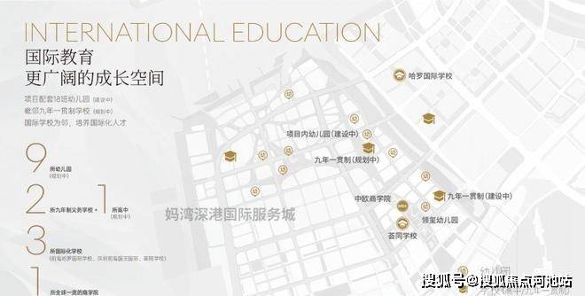 3所国际学校:前海哈罗国际学校、深圳前海国王国际、荟同学校步行10分钟可达。