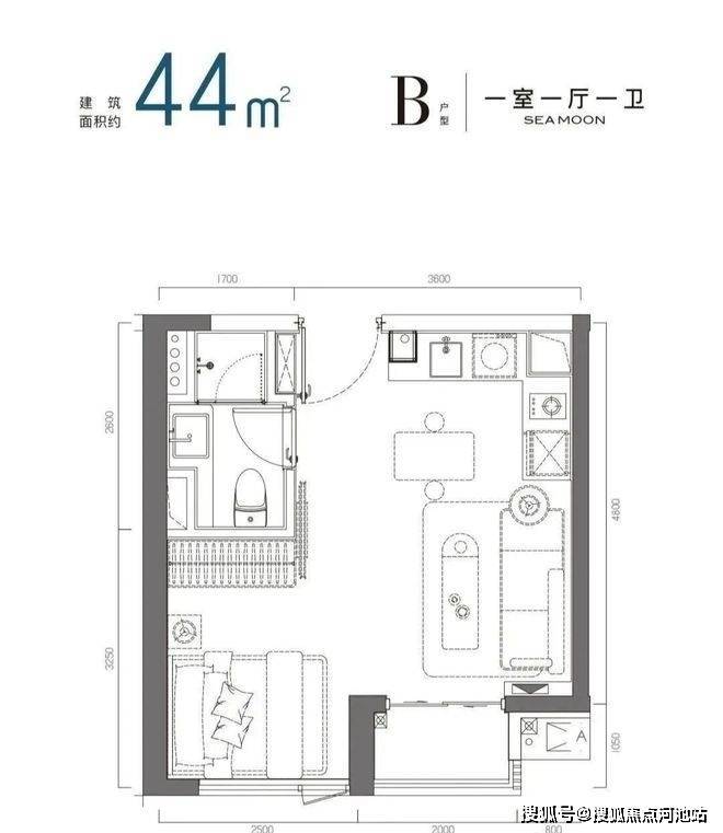 44㎡左右的一房一厅B户型 备案总价约:314-399万