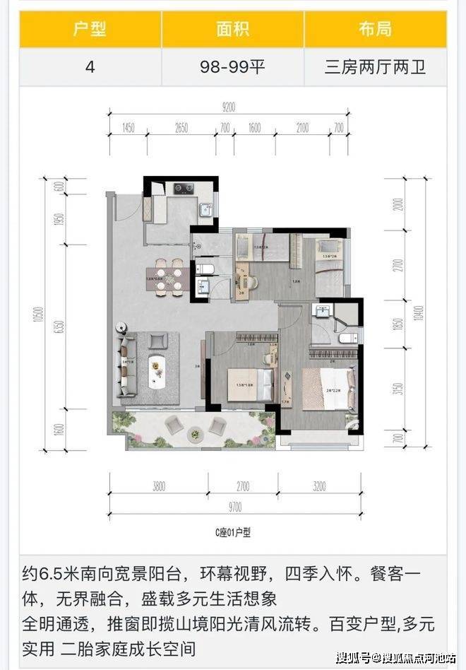 宝安石岩,言成云祥公馆于2024年11月14月已取证入市,本次推出1栋C/D座,共169套房源,面积有72㎡的2房1卫,86-88㎡的3房1卫,99㎡的3+1房2卫,140㎡的4+1房2卫户型备案均价4.81万/㎡,备案单价4.07-5.63万/㎡,总价在293-793万/套,计划在2026年9月底前带精装交房。