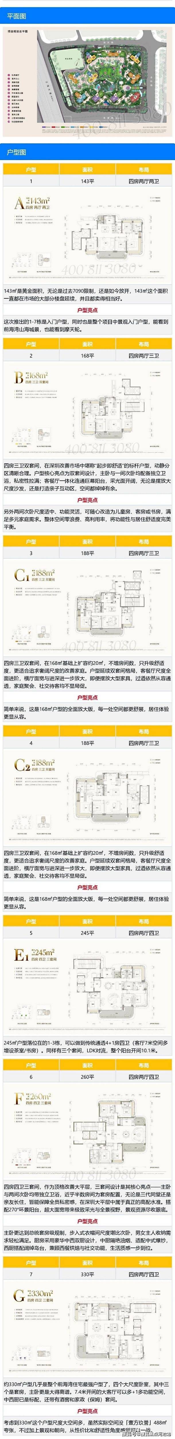 按照项目的过程版总图及户型图,可见项目有11栋(12个单元)楼,纯大户型,面积在140-168-190-253-332平。