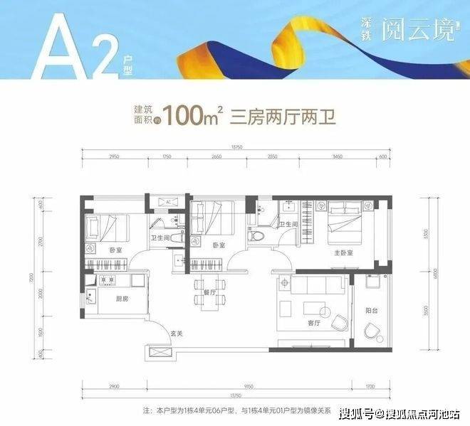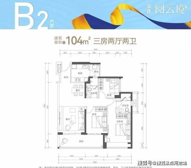 【户型面积】约100-104㎡3房