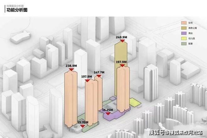 北区:规划两栋约200-240米超高层住宅;南区:规划两栋约150–200米住宅+一栋250米公寓。