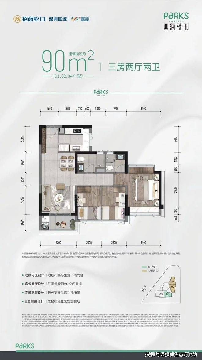 厨房u型布局,动线更顺畅,让三餐四时,尽是心动时刻;还有宽景飘窗,营造更多从容舒居场景。