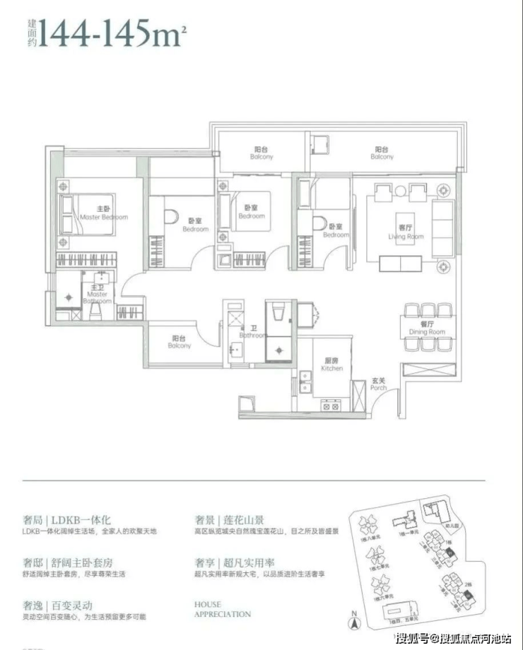 户型出色:120㎡ + 能做四房三卫双套间,公区品质佳,设计合理实用。