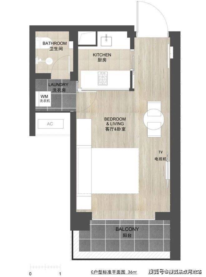 50㎡1房,带生活阳台,传统一房一厅布局。