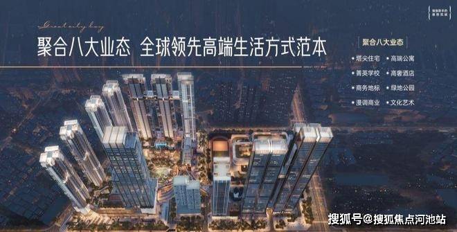 在环湾顶点之上高度聚合塔尖住宅、高端公寓、菁英学校、隐奢酒店、商务地标、绿地公园、漫调商业、文化艺术八大业态于一体,探索环湾都心、复合城市的未来生活巅峰实践。