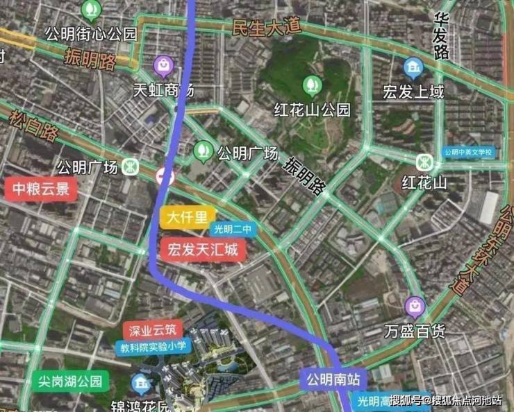 项目西南面规划光明高中城。光明高中城投资18.4亿,用地面积17.9公顷,总建筑面积230000㎡。办学规模126个班。预计于2022年建成,秋季将开始入学招生。