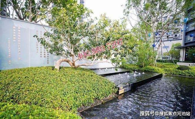 “近看落花至,远闻流水香”。听水入境,迈入第一重归家礼遇——“林下台地”生态迎宾水景,规则、细腻的线式跌水将视线高度抬高,淙淙的流水之音主动打破建筑的单调,赋予景观独特而灵动的美感。