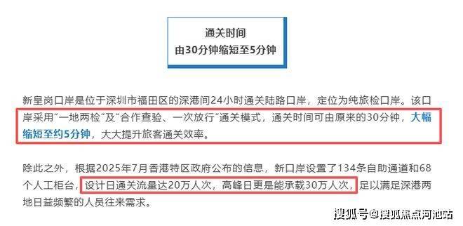 与此同时,深港互联再提速。新皇岗口岸联检大楼主体结构已基本完成,未来福田往来香港预计通关时间将从30分钟大幅缩短至约5分钟,日通关流量预计可达20万人次。这一“超级口岸”的落成,将使福田成为深港双城融合的最前沿。